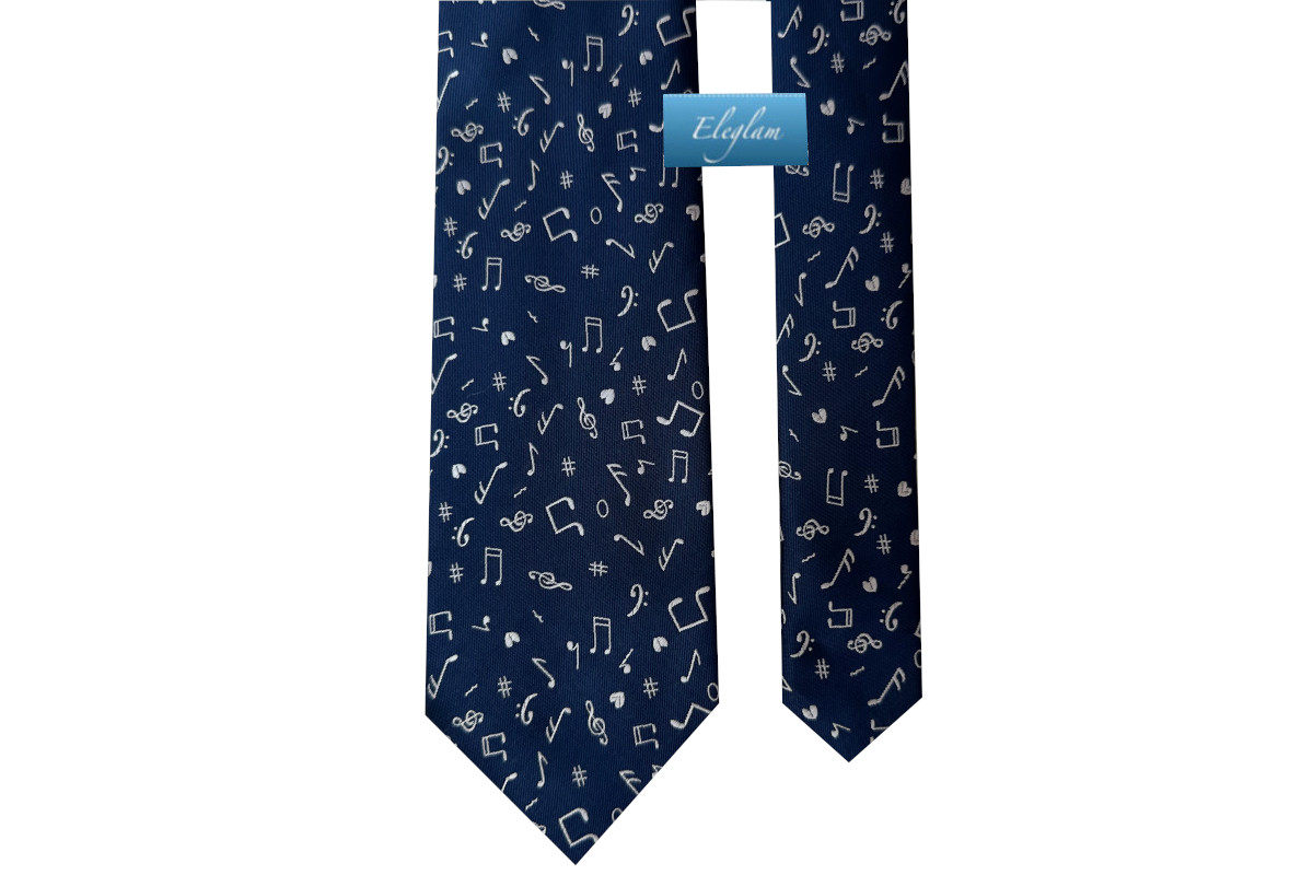 Corbata fondo marino con notas musicales en color blanco