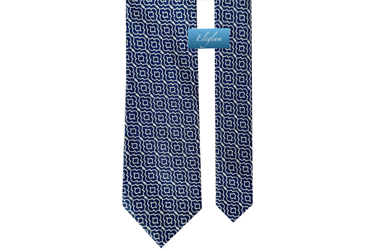Corbata fondo azul marino y motivos en color blanco