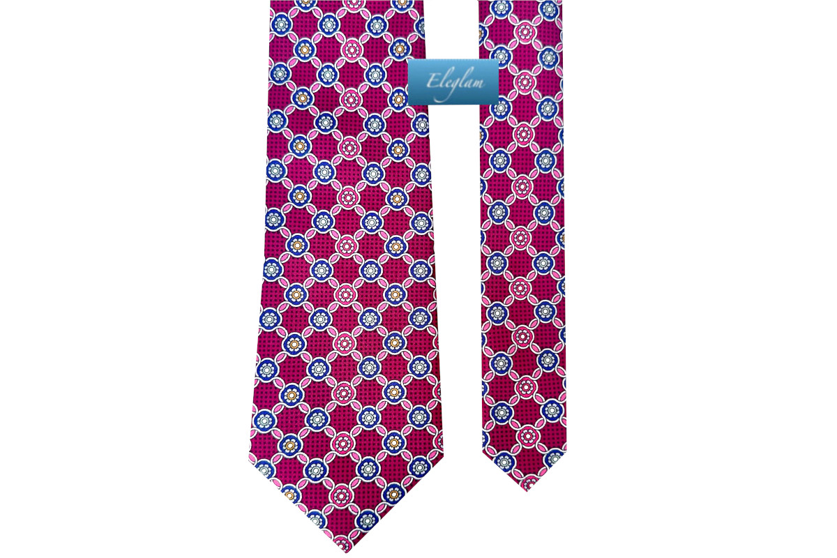 Corbata fondo color buganvilla de lunares pequeños con motivos pequeños en varios colores