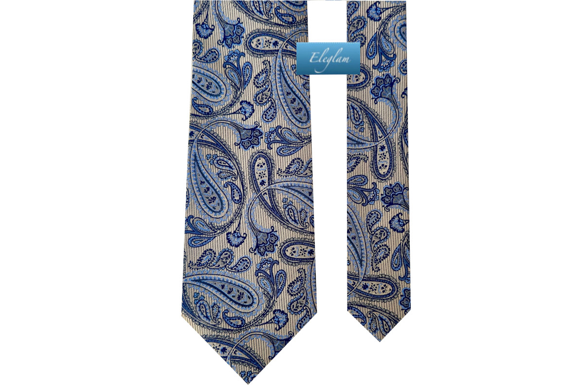 Corbata fondo tostado con cachemir en colores azulados