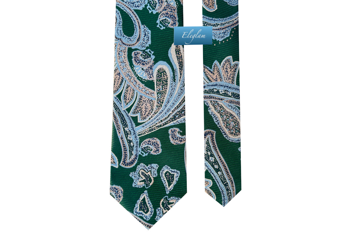 Corbata fondo verde botella con cachemir en tonos celestes
