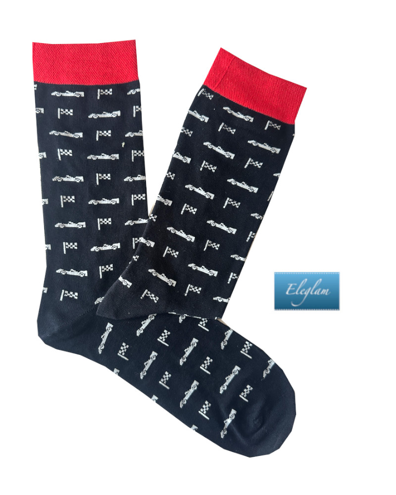 Calcetín fondo azul marino y dibujo en color blanco